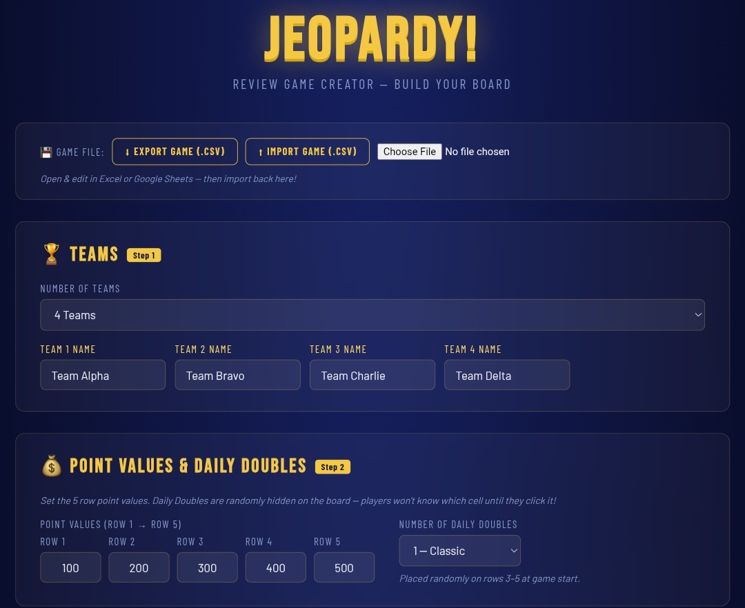 interactive Jeopardy-style review game that runs in